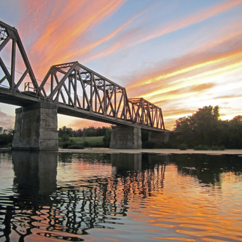 As our kayaking day of the Nation river was coming to an end, I could not resist the beauty of the sunset and the angles of the bridge.