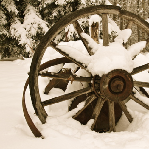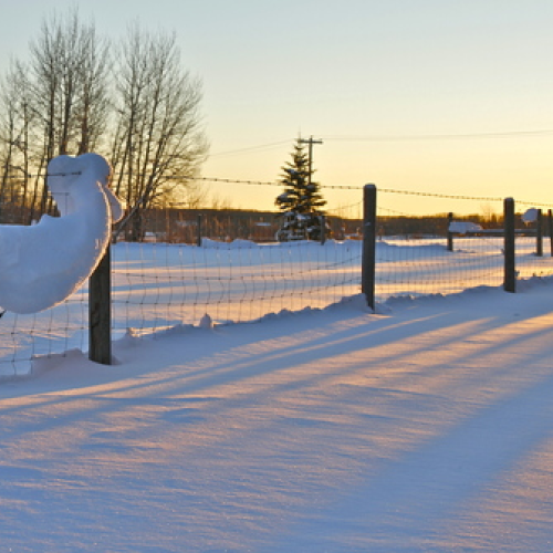 Our previous dog Mattie (cross of Black Lab and Golden retriever) charging down our snow covered driveway.