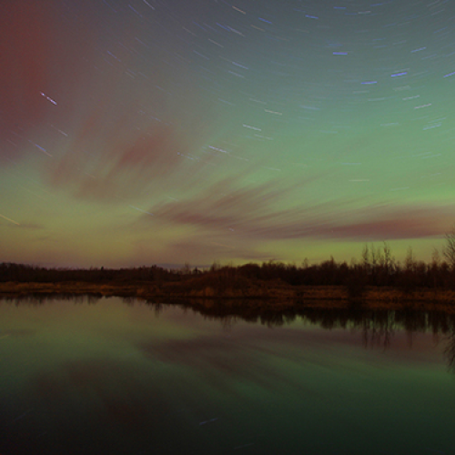 Taken in Jasper National Park May 18, 2013. This is a 6 second exposure. A heavy hauler was driving by at the time of the shot