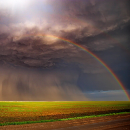 I love this photo. It's very clear. It's just amazing when you see a cloud bank actually carpet bomb an area with rain. The rainbows sweeten the deal.