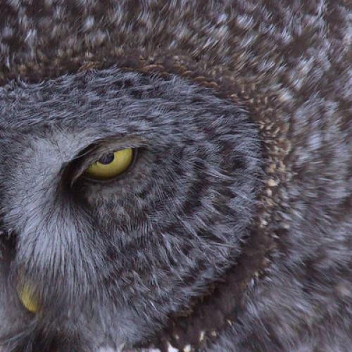 Great Grey Owl, close up honed in on breakfast.