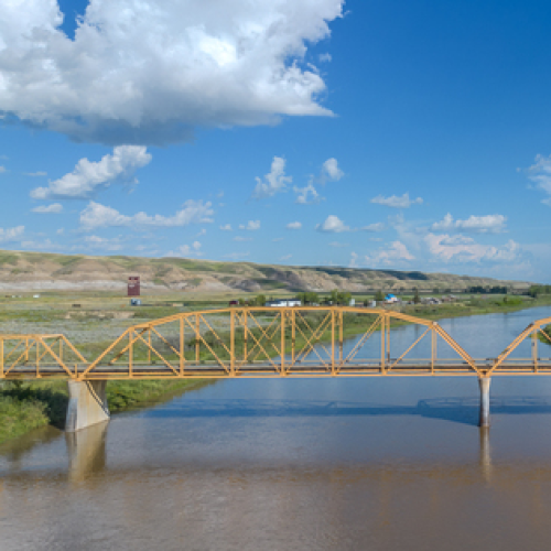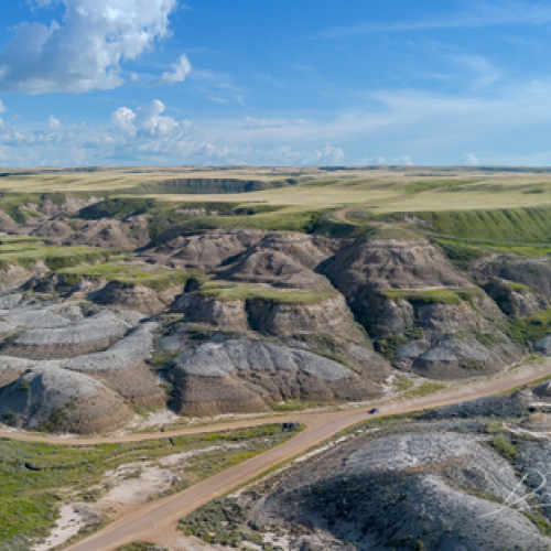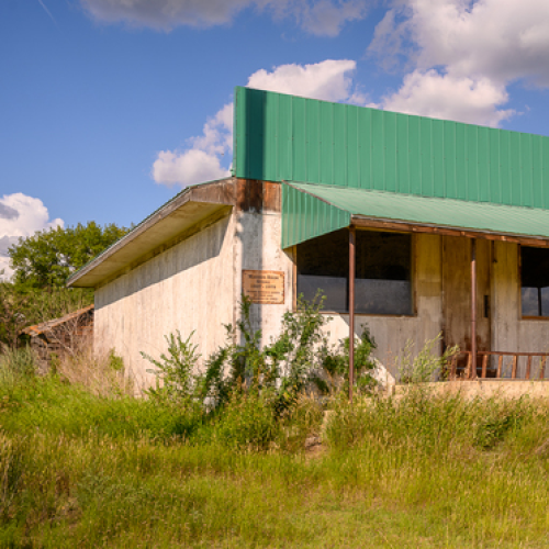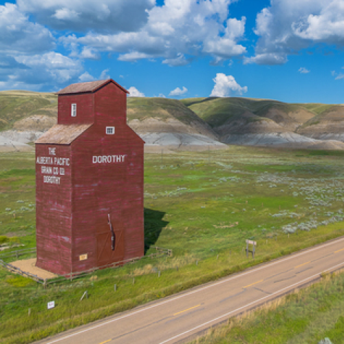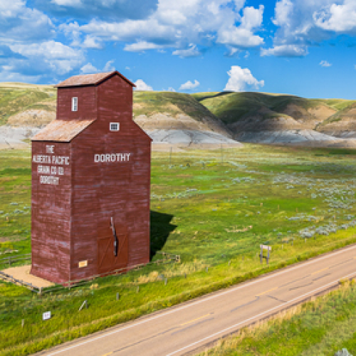 This is a single-frame, drone-lit shot of an abandoned church in Scrip, Saskatchewan.