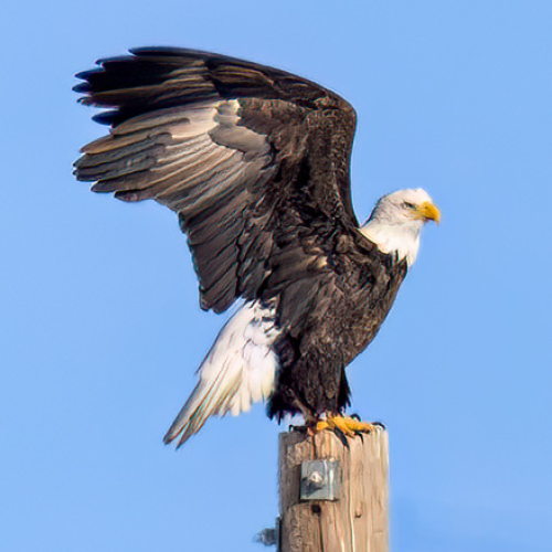 This beautiful Snowy Owl sat atop a favourite prairie perch, a power pole and spent no time in displaying her annoyance at my arrival. I took a fast shot (heavily cropped) while remaining in my vehicle before leaving her to continue enjoying our unseasonably warm January here in Alberta, Canada. This species continues to decline and its been extremely disturbing to see some photographers and tour operators continue to bait them this winter.